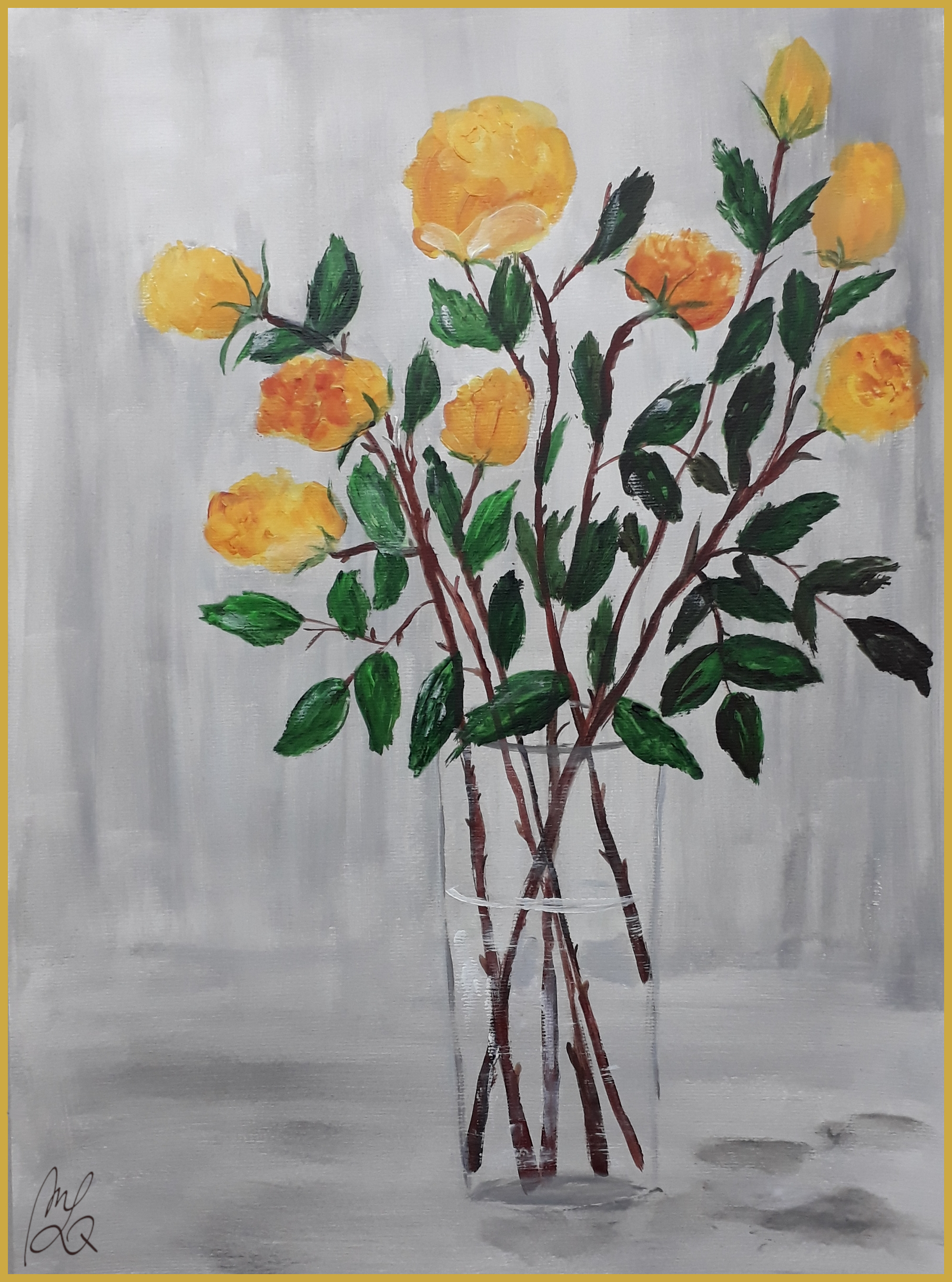 Ciselé comme un bijou, ce tableau étonne par sa délicatesse et son raffinement éthéré. La transparence du vase et de l'eau fait écho à la gracilité des tiges et des feuilles, savamment disposées comme en un herbier. L'ensemble paraît figé soudain dans le temps, immortalisant l'éphémère dans un instant de perfection.